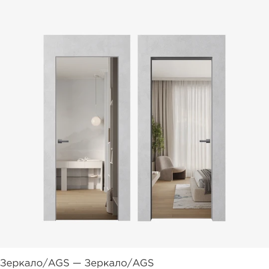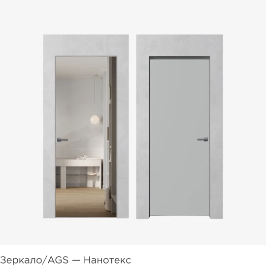 Шпон, зеркало, эмаль, цветное стекло AGS, двери в грунте — сочетайте любые покрытия.
